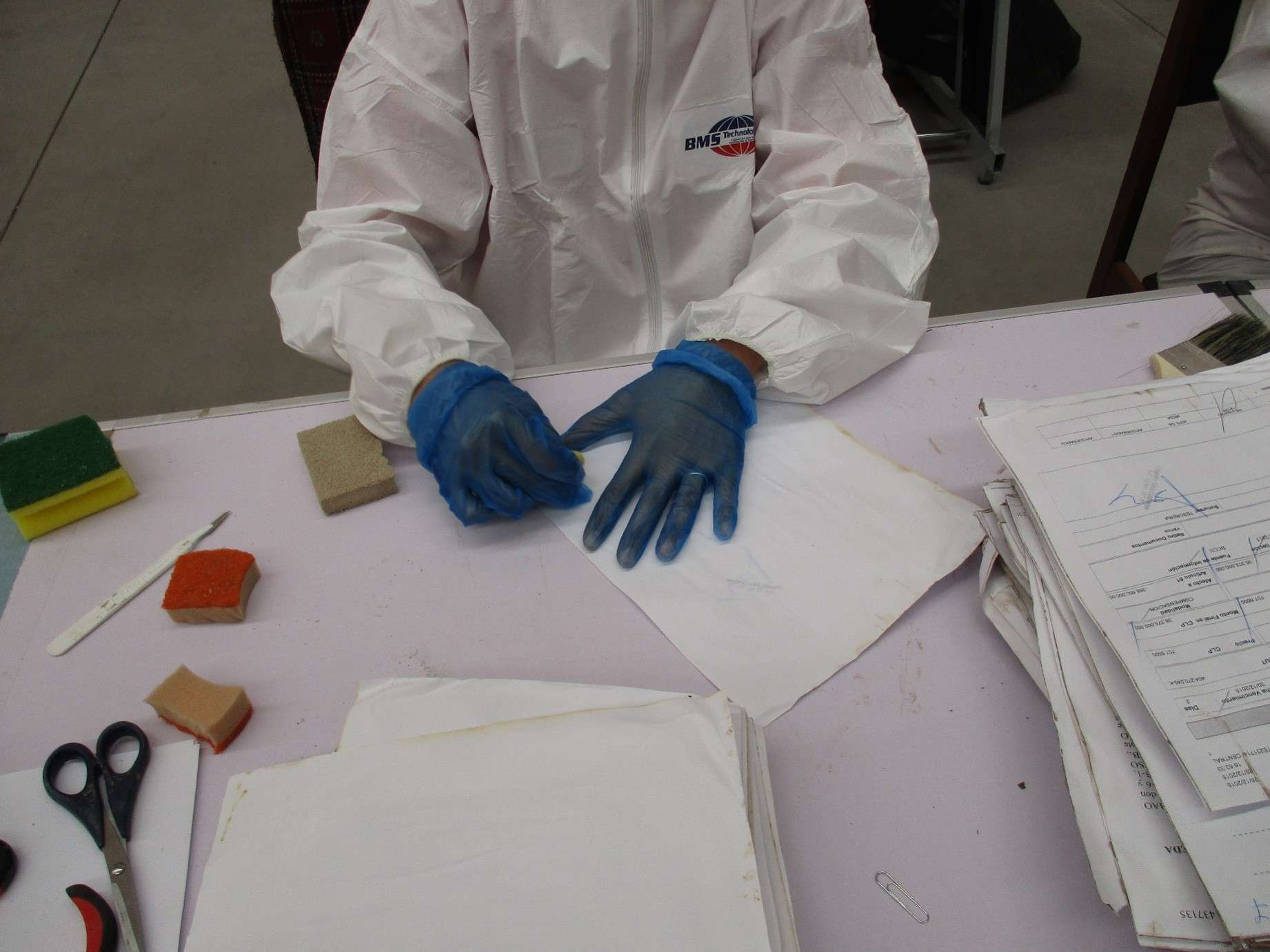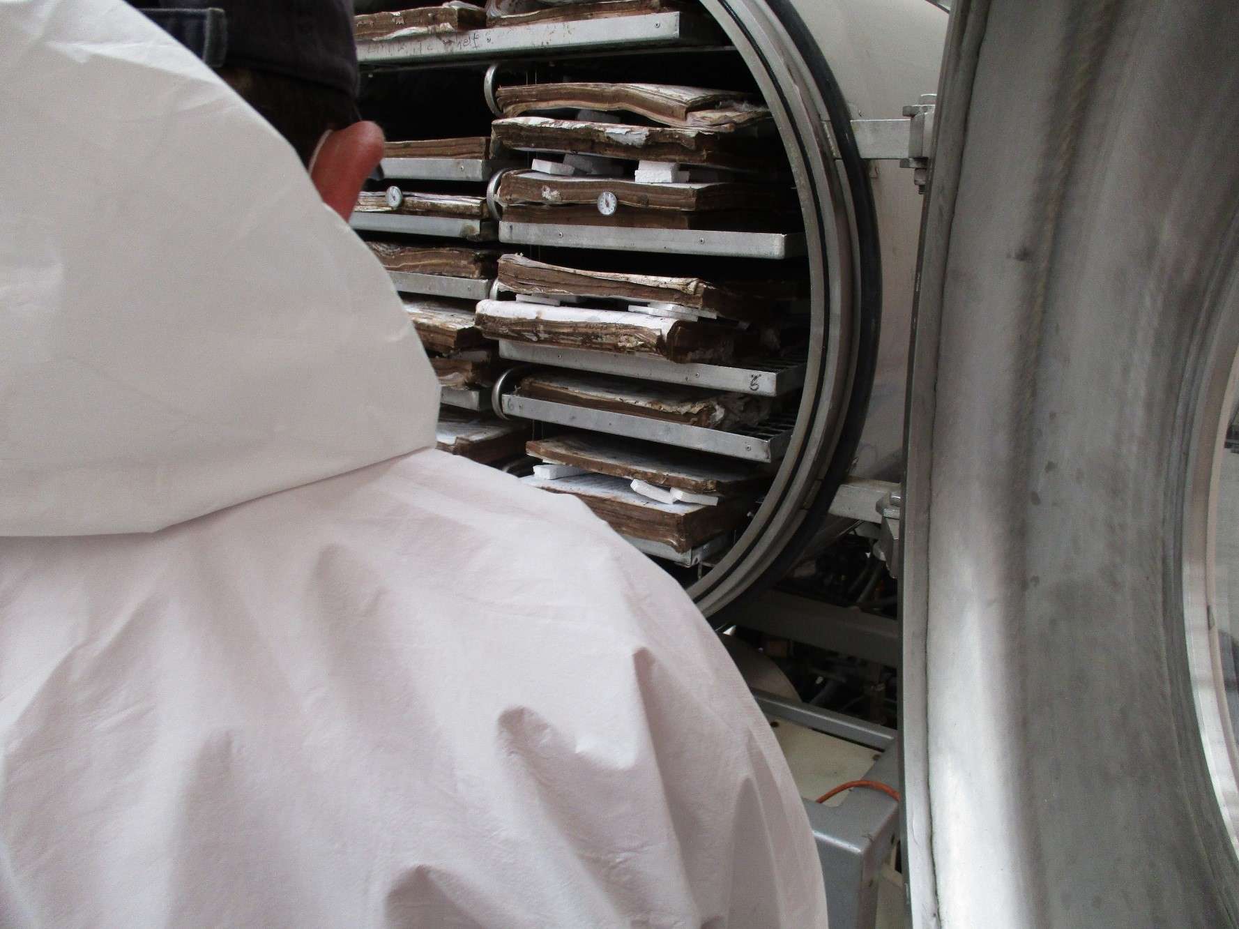 Los documentos dañados por agua, deben ser secados evitando así la proliferación microbiana (mohos, hongos y bacterias) y la deformación de los materiales. Se deben retirar a un ambiente limpio, seco y con una temperatura controlada, para su tratamiento por parte de nuestros equipos de trabajo. Para ello Restore MS cuenta con protocolos, productos y maquinaria adecuada, tales como desecantes y cámaras de liofilización, basadas en el proceso de sublimación.