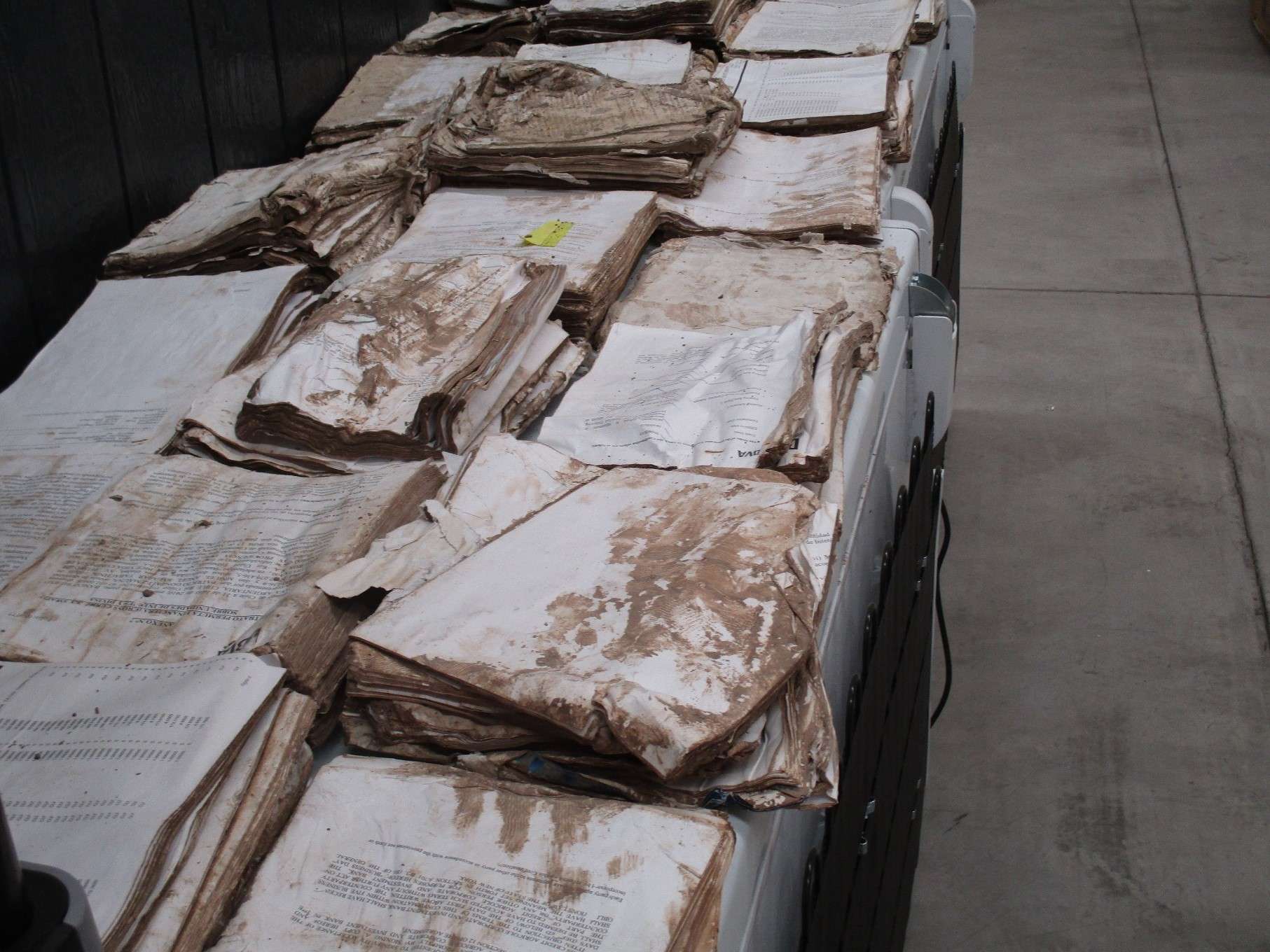 Los documentos dañados por agua, deben ser secados evitando así la proliferación microbiana (mohos, hongos y bacterias) y la deformación de los materiales. Se deben retirar a un ambiente limpio, seco y con una temperatura controlada, para su tratamiento por parte de nuestros equipos de trabajo. Para ello Restore Mitigation Services cuenta con protocolos, productos y maquinaria adecuada, tales como desecantes y cámaras de liofilización, basadas en el proceso de sublimación.